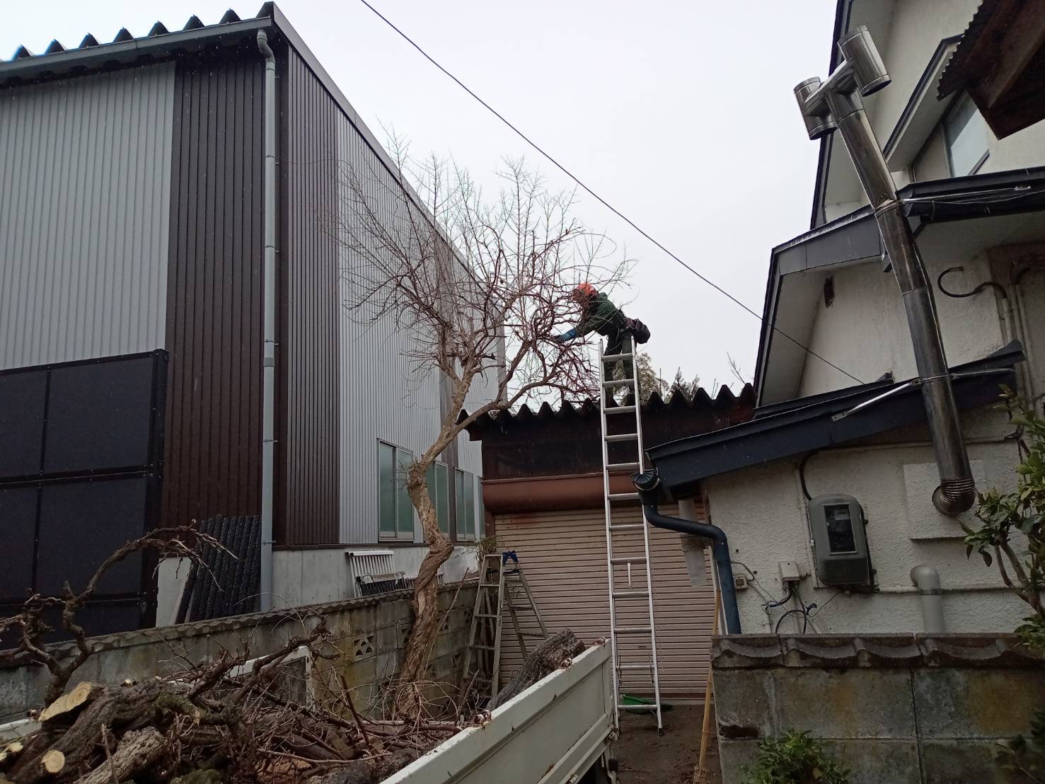 また、現場周辺は静かな住宅地だったため出来る限り騒音を抑える必要があり、エンジン式ではなく音の静かな電動チェンソーと手ノコを使用し、近隣の皆さまへのご迷惑を最小限に抑えながら施工を行いました。