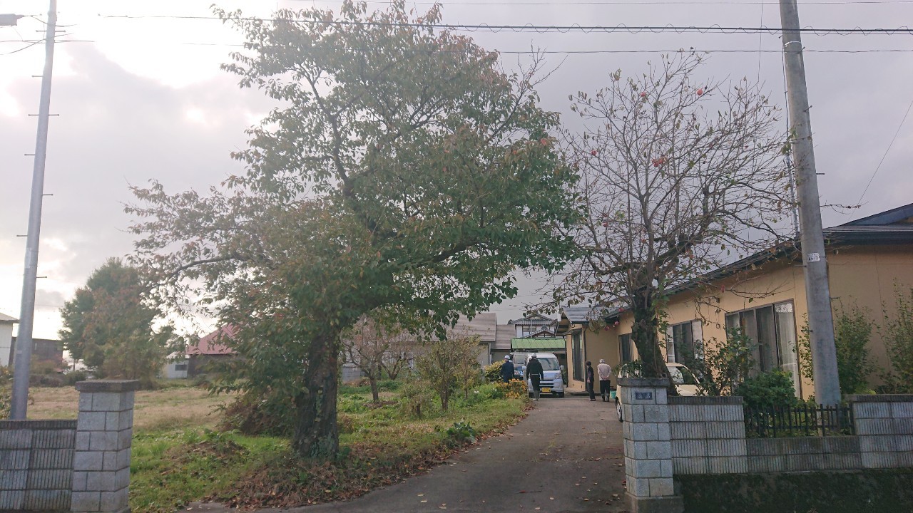 桜の木、柿の木は登って伐採し、今回も無事に施工完了。