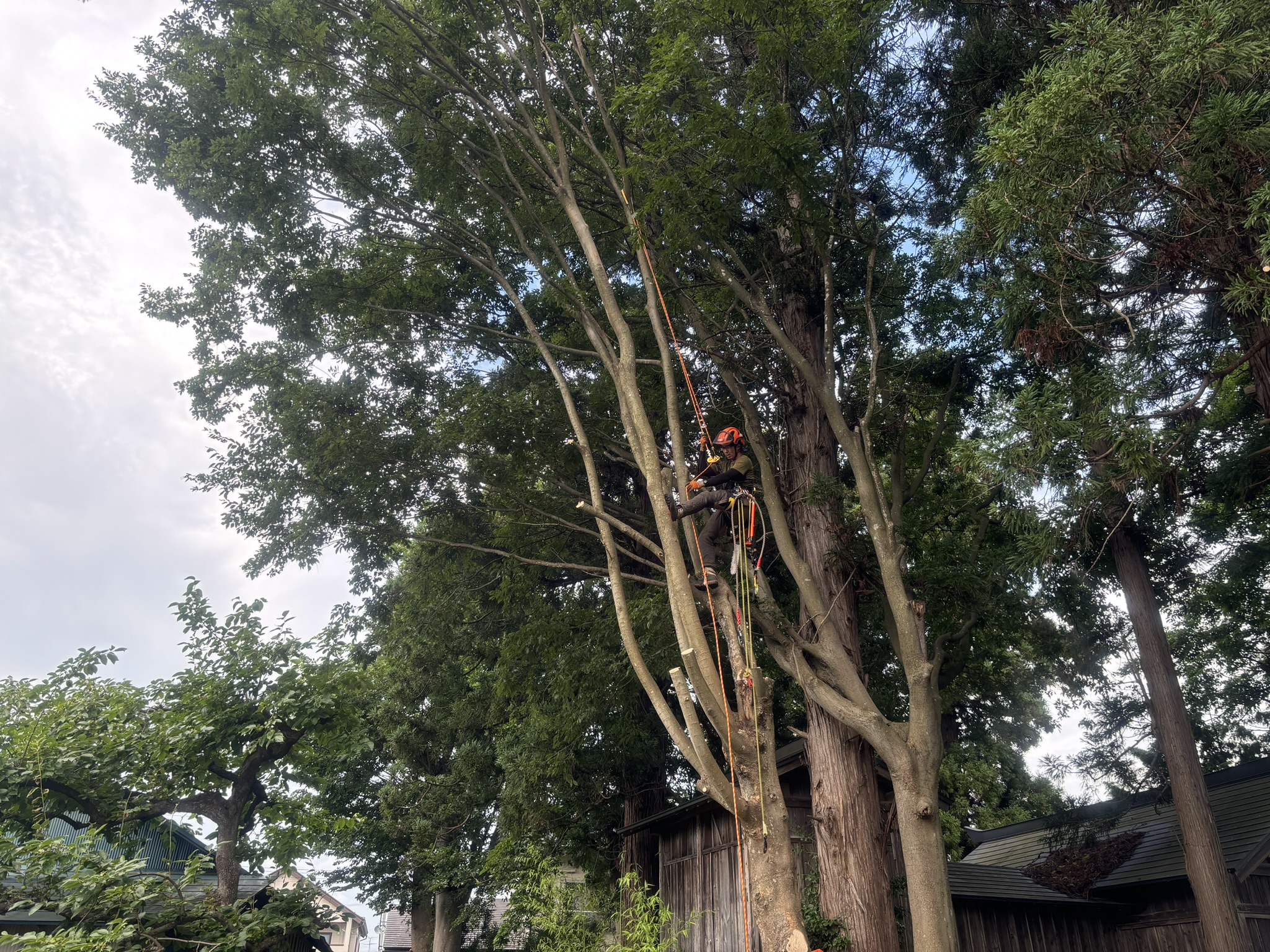 何本も何本もに分かれた枝が四方八方に広がっていたり、うち1本は腐朽により倒れてしまっていたり、知恵と工夫を凝らしての作業となりました。