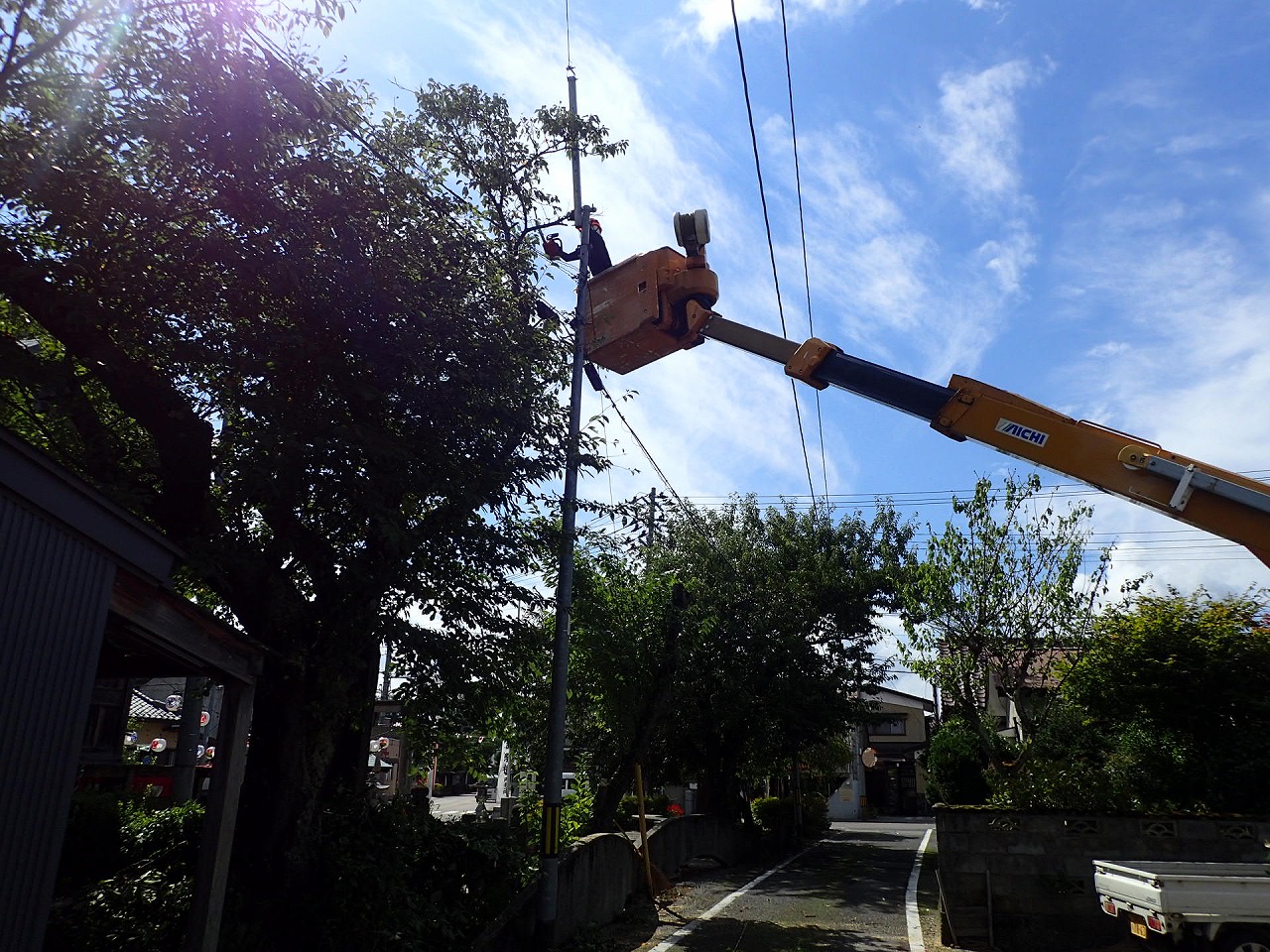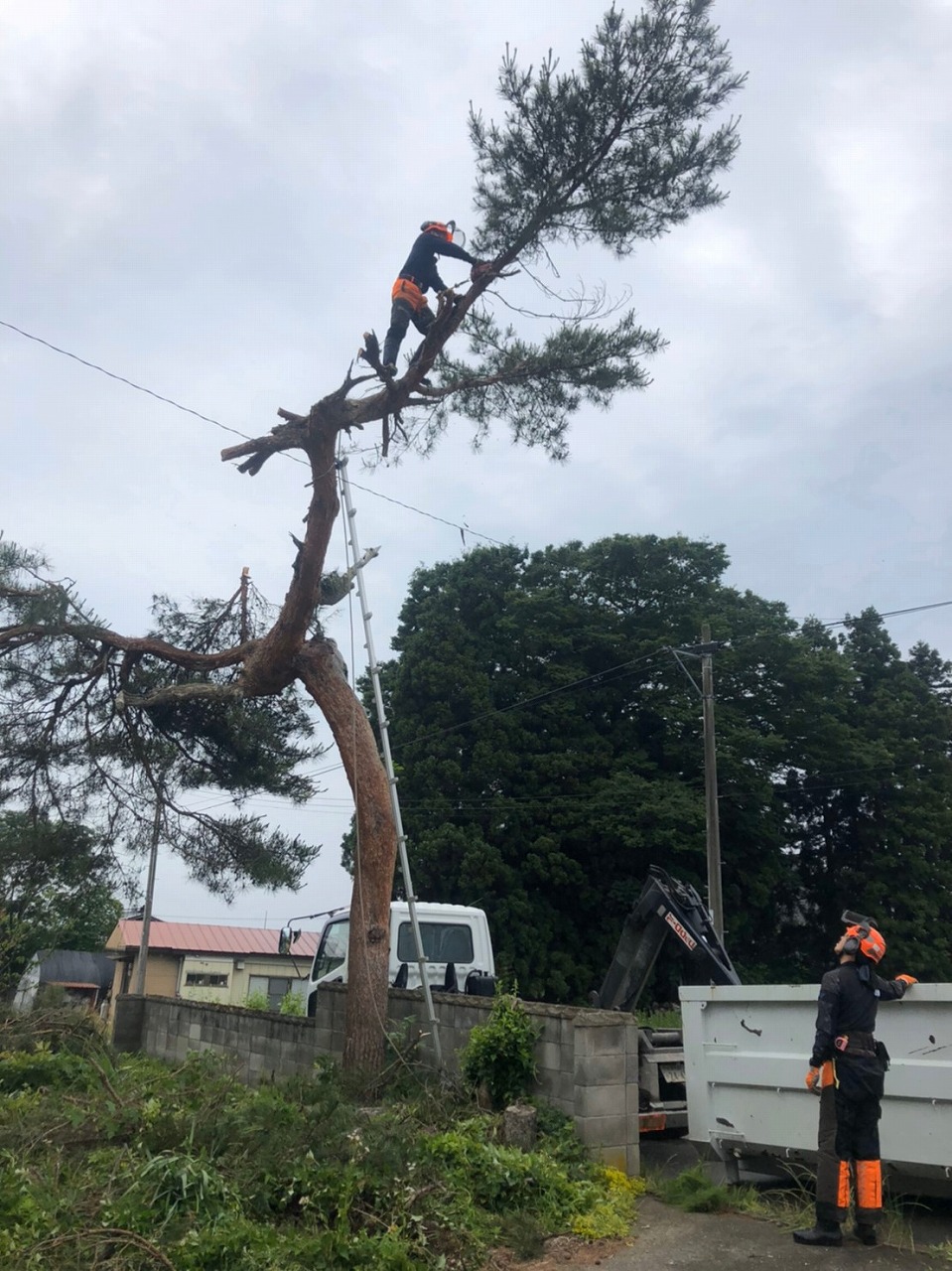 大径木でもおまかせ下さい!電線や建物を除けながらの伐採も経験豊富なスタッフが迅速、丁寧に作業します。