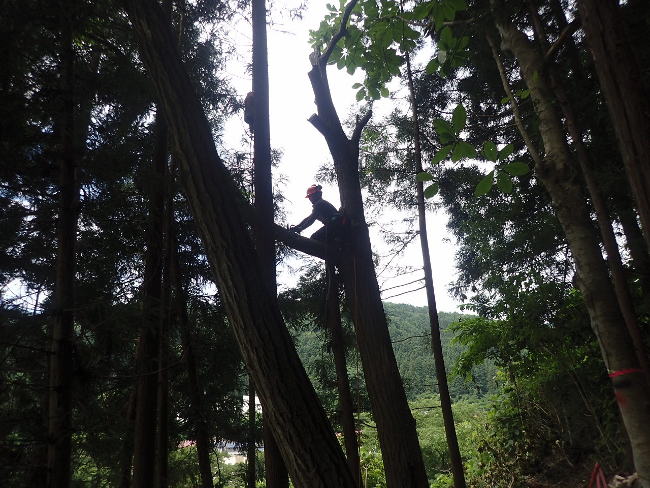 構造物に隣接していて木を倒すスペースが無かったりなど、通常の伐採が出来ない場合用いられる、まさに特殊な伐採技術。