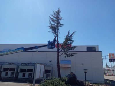 ラフタークレーンなどを使用し、安全に伐採出来ました。