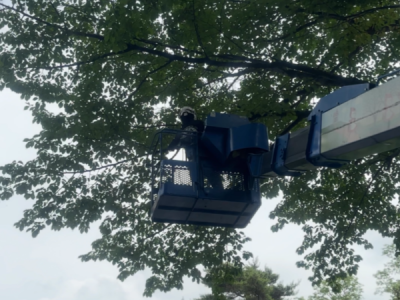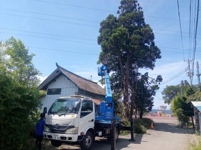 高所作業車を用いての作業でしたが、地域の方々のご理解もあり、スムーズに進めることが出来ました。