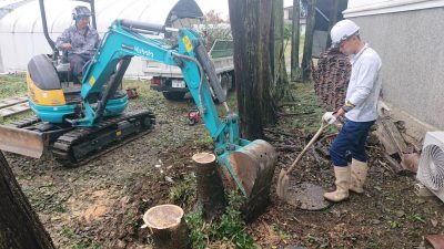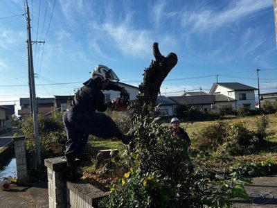 また、所有している墓地付近の柿の木の伐採も行いました。水路や墓地をかわしながらの作業でしたが、無事に終えることが出来ました。